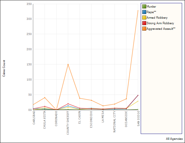 CRIME   CARLSBAD   CHULA VISTA   CORONADO   COUNTY SHERIFF   EL CAJON   ESCONDIDO   LA MESA   NATIONAL CITY   OCEANSIDE   SAN DIEGO   TOTAL